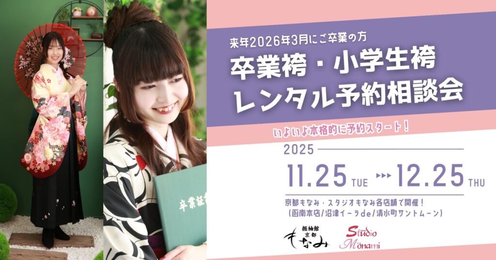 「卒業袴・小学生袴レンタル予約相談会」を2025年11月25日~12月25日まで開催。来年2026年3月にご卒業の方は要チェックです!