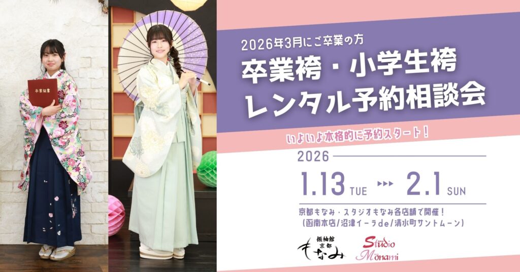 卒業袴・小学生袴レンタル予約相談会」を2026年1月13日~2月1日まで開催。来年2026年3月にご卒業の方は要チェックです!