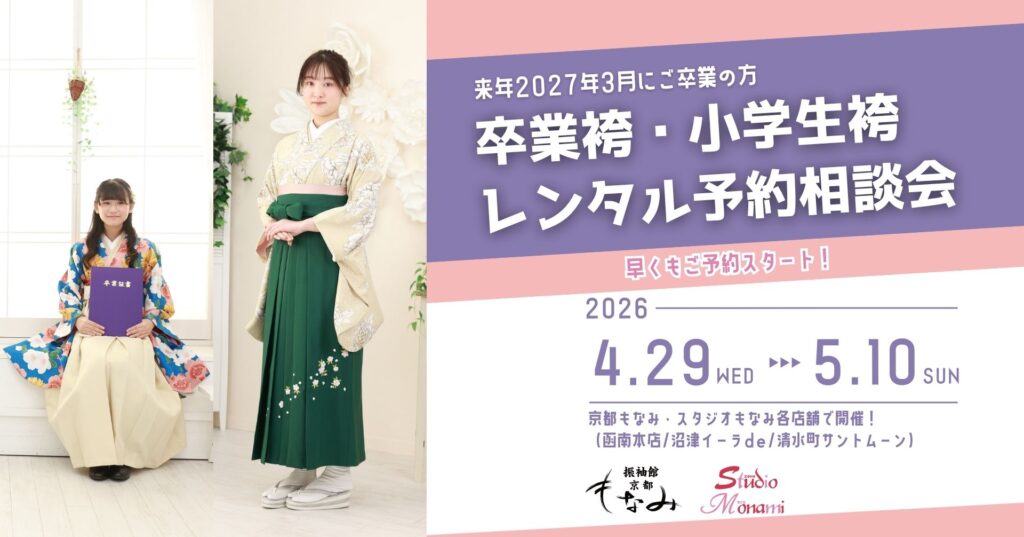 「卒業袴・小学生袴レンタル予約相談会」を2027年4月29日~5月10日まで開催。2027年3月にご卒業の方は要チェックです!