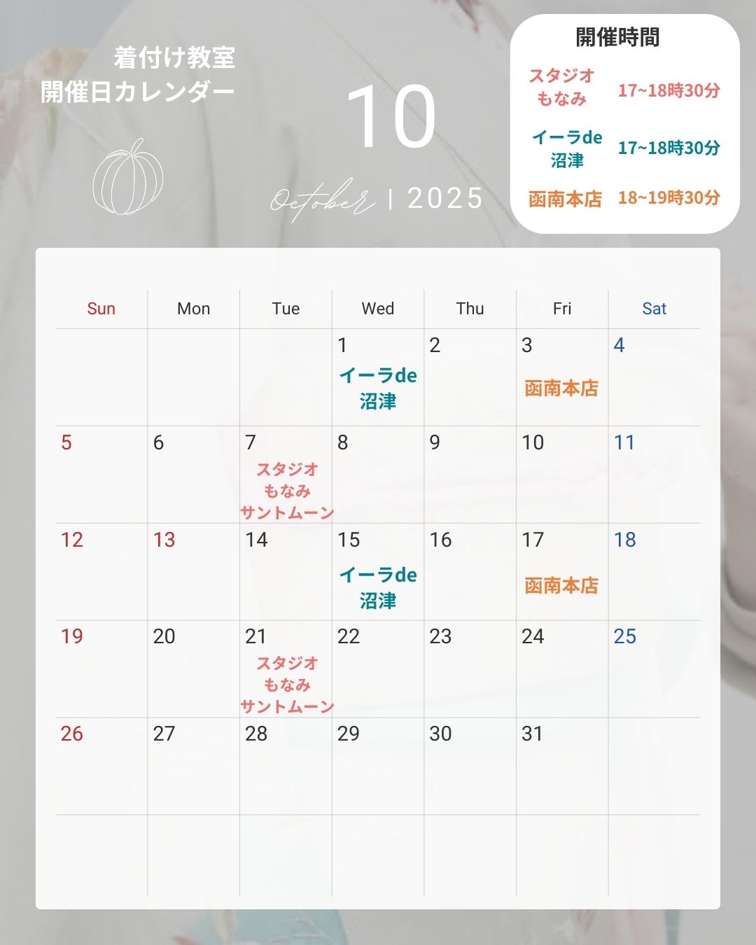 沼津イーラde店にて「きもの初心者さん向け着付け教室」開催【開催日:2025年11月5日、11月19日】